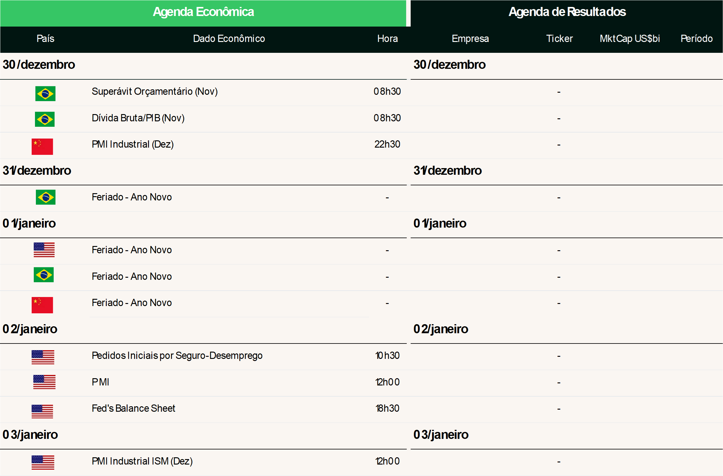 ![]() 1 – Fonte: CNBC 30/dez/2024; Fonte: Bloomberg, 30/dez/2024 | Elaboração: Avenue Intelligence