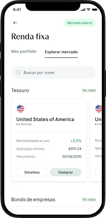 Mais de 700 opções de títulos dos EUA, Brasil e América Latina para você diversificar sua carteira.